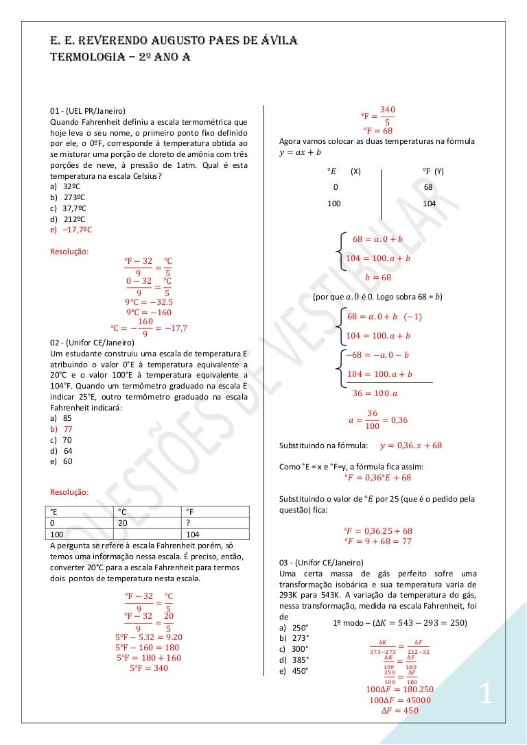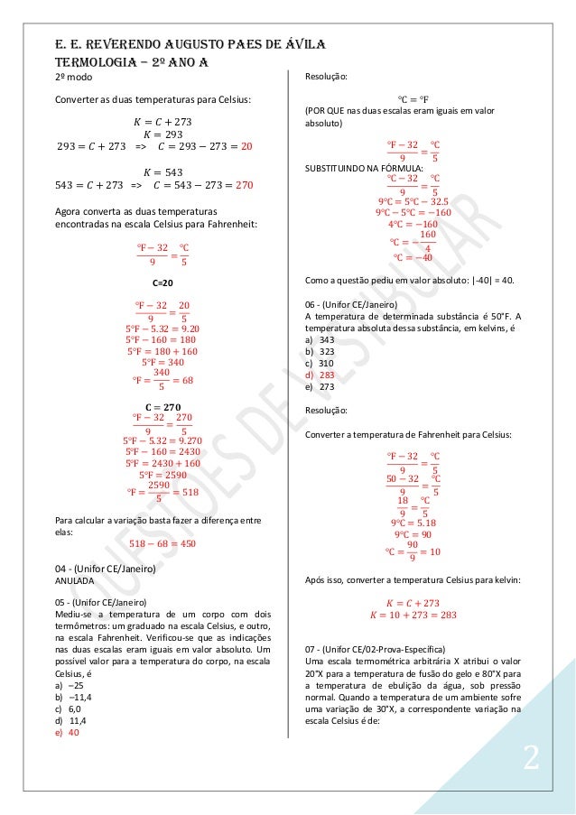 Gabarito Das Questoes De Termologia 2 Ano