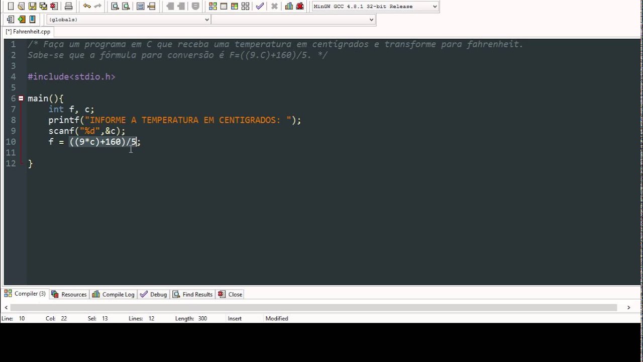 Linguagem C Em Praticas Pratica Conversao De Temperatura Youtube
